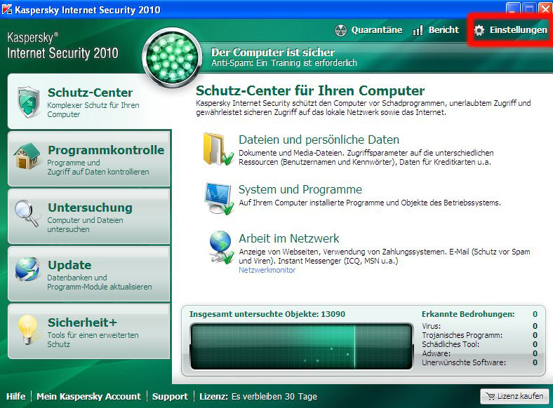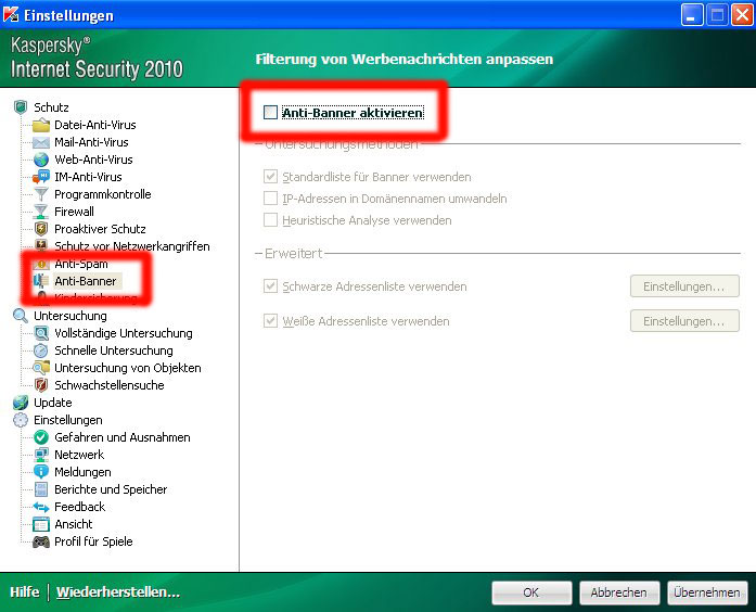 Lösungsansatz: Falls Ihnen beim Klicken auf unsere Links nur weiße Seiten angezeigt werden oder überhaupt keine neue Seite geööfnet wird, kann dies an einem Werbeblocker bzw. Popup-Blocker liegen. Um unsere Seiten fehlerfrei nutzen zu können, ist es notwendig den Werbeblocker zu deaktivieren. Exemplarisch möchten wir Ihnen am Programm Kapersky Internet Security zeigen, wie Sie den dort enthaltenen Werbeblocker deaktivieren. Dieses kleine Tool namens Anti-Banner erledigt übrigens keine sicherheitsrelevanten Aufgaben. Es ist nur dafür geschaffen worden, Werbebanner herauszufiltern. Leider kann es auch Links blockieren, die Sie eigentlich gerne aufrufen würden. Gehen Sie bitte wie folgt vor, um den Anti-Banner in der Kapersky Internet Security zu deaktivieren:
